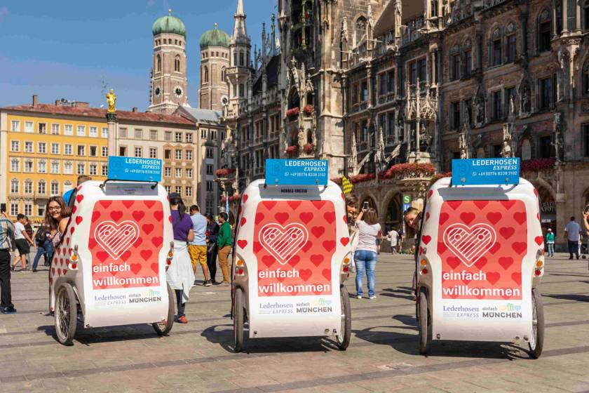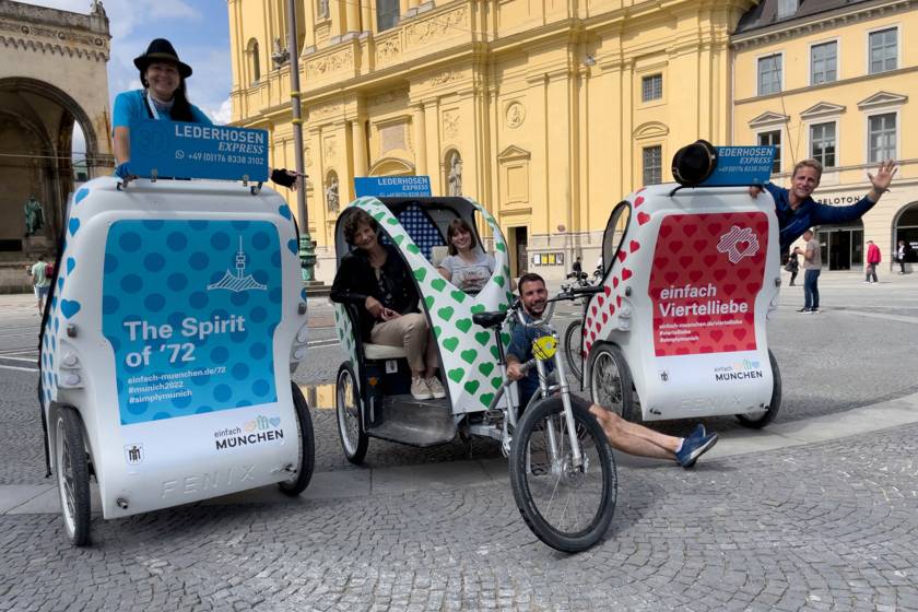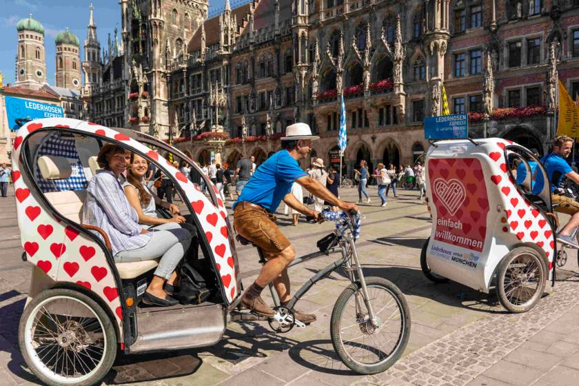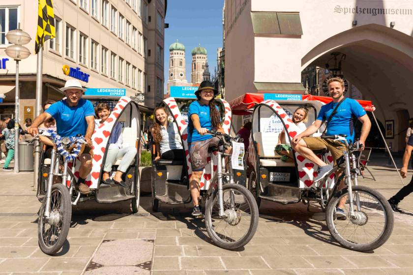 München mit der Rikscha zu erkunden ist einmalig! Buchen Sie die unterhaltsame Rikscha-Stadtrundfahrt, die Sie an die ganz besonderen Orte der Stadt führt. Die netten und kundigen Fahrerinnen und Fahrer könnten ganze Tage mit ihren spannenden Geschichten über München füllen.