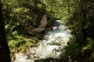 Im Gegensatz zu anderen Schluchten ragen in der Schleifmühlenklamm bei Unterammergau die Felswände nicht immer bis direkt an den Bach heran, die Schlucht ist dadurch oft etwas breiter, offener und sonniger. In den Gumpen lassen sich wunderbar die Füße kühlen.
