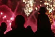 Menschen betrachten ein funkelndes Feuerwerk in München