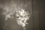 Bei dieser Lampe denkt man sofort an einen Ehestreit – oder zumindest an eine handfeste Auseinandersetzung mit dem Porzellan. Die Porca Miseria! wird von der Firma Ingo Maurer persönlich und individuell für alle Kunden entwickelt und drei- bis fünfmal pro Jahr verkauft. Maurer selbst nannte sie eine „eingefrorene Explosion eines Porzellanschranks“. Die limitierte Pendelleuchte lässt Bruchstücke von Geschirr und Besteck in alle Richtungen fliegen. In der Mitte der Leuchte sind die Leuchtmittel mit Hülsen in dünne Metallstäbe gesteckt, an deren Enden die Porzellanscherben befestigt sind. Die unterschiedlich großen und dicken Scherben ergeben interessante Lichteffekte und eine ungeheure Dynamik.