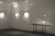 Zwei parallel gespannte Metallseile bilden die Grundlage für Ingo Maurers „YaYaHo“-Lichtsystem, das er 1984 entworfen hat. YaYaHo ist ein Niedervolt-Halogen-System und verkörpert das typische Ingo-Maurer-Design – neu, innovativ und mit perfekter Technik ausgestattet. Alle Elemente sind horizontal und einige zusätzlich auch vertikal beweglich. Dadurch entsteht sehr individuelles Licht, jeder Raum wird anders beleuchtet und auf die persönlichen Bedürfnisse der Bewohner ausgerichtet. Maurer erreichte bei minimalem Materialeinsatz mit dieser Leuchte maximale Flexibilität. Ein weiterer Clou ist die niedrige elektrische Spannung, mit der die modulare Lampe operiert. Ein Transformator gibt eine für den Menschen ungefährliche Spannung von 12 Volt an die Metallseile aus. Berührt man nur eines der dünnen Drahtseile, beginnt YaYaHo zu leuchten. Das Originalsystem besteht aus 276 Teilen.