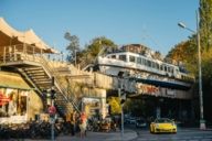 Dort wurde der Kahn mit Kränen auf eine aufgelassene Eisenbahnbrücke gehoben. Über dieses, und die Motivation für weitere Projekte, hat Daniel uns damals mit seinen nicht weniger aktiven Brüdern ein Interview gegeben. Mittlerweile ist die Alte Utting heiß-geliebtes Frühstückscafé, Biergarten und Kulturbühne mit Lesungen und Konzerten in einem. Keiner sollte München verlassen, ohne wenigstens einmal bei Sonnenuntergang am historischen Steuerrad fototauglich Kapitän gespielt zu haben.