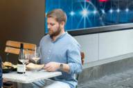Bis ein gut gelaunter Mann mit kurzem, blonden Bart die Szene betritt, in der Hand drei dünnwandige Weingläser und eine Flasche, deren Etikett nach einem sehr alten französischen Weingut aussieht. Wolfgang Hingerl hat uns hierher zum Essen bestellt, der Mann hinter einer Reihe von Münchner Restaurants, die eher am oberen Ende der offiziellen Skala operieren: Das Mural und das Farmhouse haben beide einen Michelin-Stern, seine anderen beiden Läden – die Bambule! Bar und die Bar Mural – bieten ebenfalls gehobene Regionalküche an.