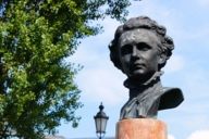 Eine Büste von König Ludwig II. auf der Corneliusbrücke in München