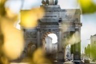 La Quadriga sul Siegestor a Monaco di Baviera, fotografata dall'alto con un drone.