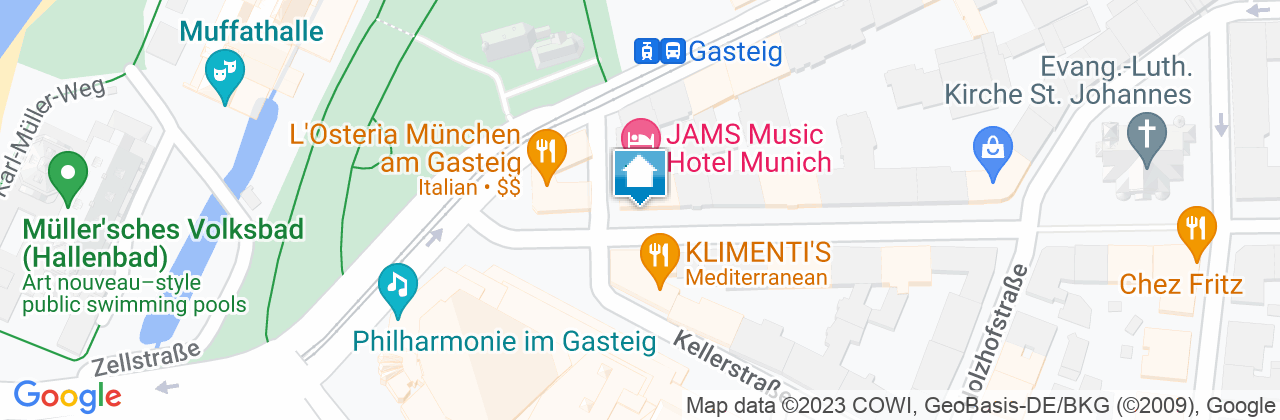 Nächste Haltestelle öffentlicher Nahverkehr: Trambahnhaltestelle Gasteig und/oder S-Bahn-Station Rosenheimer PlatzAnreise vom Flughafen München:
