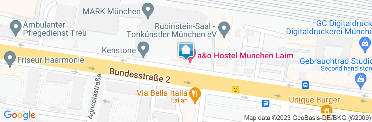 Das a&o München Laim stellt Einzel-, Doppel- und Familienzimmer mit eigener Dusche und WC im Hotelteil und Mehrbettzimmer für 4 bis 6 Personen mit eigenem Bad und bequemen Etagenbetten im Hostelteil für unsere Gäste bereit. WLan ist im gesamten a&o für alle Gäste kostenlos verfügbar. Unser junges und freundliches Personal ist an allen 365 Tagen, 24 Stunden für Sie da. Auch unsere Lobbybar lockt rund um die Uhr mit Snacks und Getränken.Das a&o München Laim befindet sich im gleichnamigen Stadtteil direkt an der S-Bahnstation Laim, nur vier Stationen vom Hauptbahnhof. Das Haus ist nur 3,5km vom Schlosspark mit dem Schloss Nymphenburg und dem Königlichen Hirschgarten entfernt. Auch die Innenstadt und die berühmte Theresienwiese sind mit den öffentlichen Verkehrsmitteln super zu erreichen!