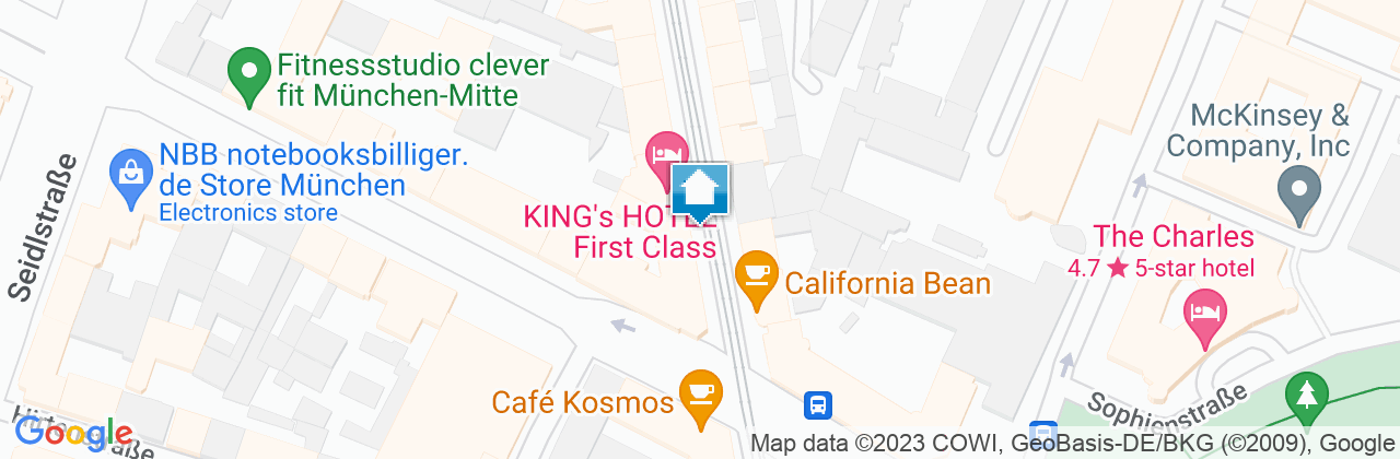 Das KING’s Hotel First ist die beste Adresse für technik-affine Reisende, die ein individuell geführtes Hotel im Münchner Zentrum zu schätzen wissen – und für die eine Übernachtung in München mit Stil und Style verbunden sein soll. Dank der zentralen Lage des Hotels ist es nur ein Katzensprung zu allen beliebten Attraktionen der Stadt, zu den besten Restaurants und den interessantesten Geschäften in München.