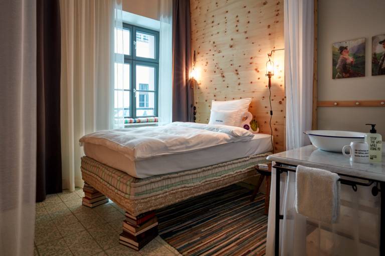 Die Kleinen Dienstbotenkammern eignen sich hervorragend für den kurzen Aufenthalt in der Stadt. Auf 18qm sind die Kleinen Dienstbotenkammern gemütlich eingerichtet und mit Einzelbett, Regendusche und Smart TV ausgestattet. Sie bieten einen Blick in die urbane Nachbarschaft. Um entspannt von A nach B zu gelangen, steht allen Gästen der kostenfreie MINI-Verleih zur Verfügung. Frischluftfanatiker können sich Schindelhauer Bikes mieten.