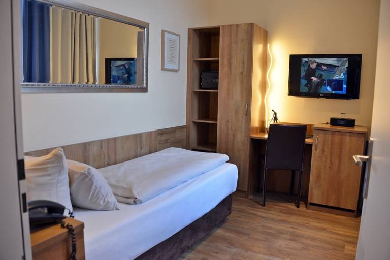 Unsere stilvoll eingerichteten und klimatisierten Zimmer bieten ein gelungenes Zusammenspiel aus modernem Wohnstil und wohliger Gemütlichkeit. Selbstverständlich sind alle Zimmer mit einem Einzelbett, Dusche/WC, Fön, Minibar, Sat-TV, Flachbild-TV, Direktwahltelefon, Safe, Dockingstation und W-Lan ausgestattet. Kostenlose W-Lan-Nutzung im gesamten Haus. Der Zimmerpreis versteht sich inklusive Frühstück.