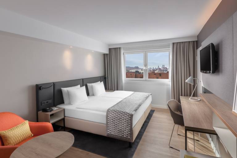 Zimmerausstattung20qm Zimmer mit urbanen Flair und klaren Linien in dezenter Farbgebung. Das warme und freundliche Interieur ist definitiv die richtige Wahl um nach einem langen Tag beim Fernsehen zu entspannen oder arbeiten Sie an Ihrem Schreibtisch mit kostenfreiem WLAN und einer Tasse Tee.