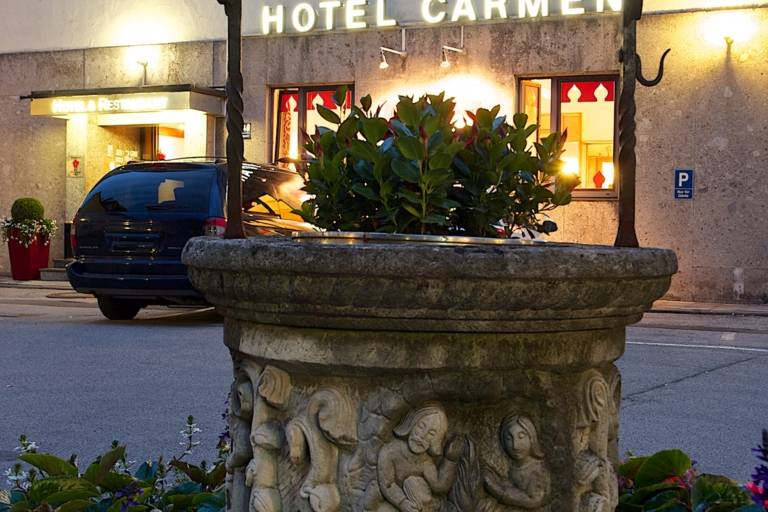 Das Hotel Carmen bietet klassisch eingerichtete Zimmer mit Aussicht auf den ruhigen Innenhof. Jedes Zimmer verfügt über Sat-TV mit kostenlosen Sky-Kanälen, eine Minibar und ein eigenes Bad mit Haartrockner.