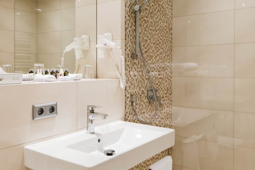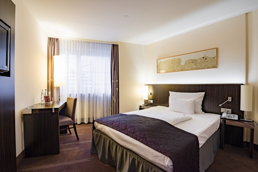 ZimmerausstattungDie Einzelzimmer der Standard Kategorie haben eine Größe von ca. 18 Quadratmetern. Sie sind mit dezenten, warmen Farben versehen und verfügen über eine individuell regulierbare Klimaanlage, einen Schreibtisch, einen Safe, einen Flachbild Fernseher, eine Minibar und ein Telefon mit Voicemail Funktion.