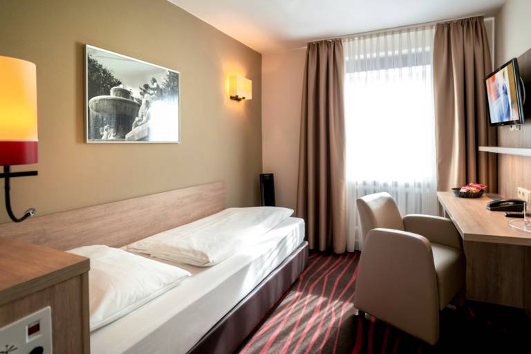 Helle und farblich abgestimmte Zimmer mit modernem Chic. Unsere Standard Zimmer erwarten Sie mit frischem Anstrich und optimaler Raumaufteilung. Zu den Annehmlichkeiten gehören ein Schreibtisch mit einer kostenfreien WiFi-Internetverbindung sowie ein moderner Flachbild-TV und natürlich ein Minibarkühlschrank. Einzel City Standard (Front- oder Seitenstraße) / Einzelbett (90 x 200 cm) / 13 m² - 15 m² / nicht klimatisiert / 100% Nichtraucher / iPad Zimmersafe