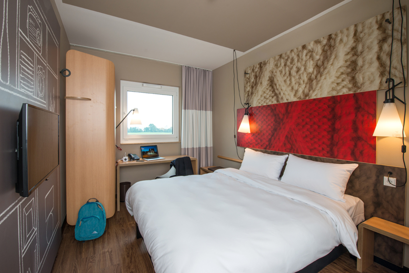 Erholsamer Schlaf ist Ihnen sicher! Das innovative Sweet Bed by ibis Doppelbett wurde bis ins Detail für Ihren ultimativen Schlafkomfort entwickelt. Das Zimmer ist schallisoliert, klimatisiert und hat gratis WLAN. Mit Schreibtisch und Flatscreen.