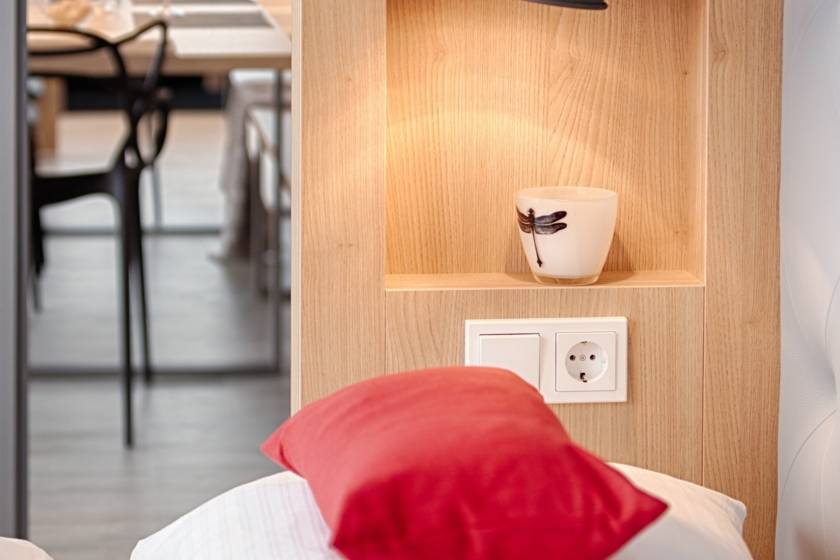 In unserem Double Business Apartment auf 58 m² für bis zu 4 Personen ist alles doppelt : die Küchen, die Badezimmer, die Betten und die Ess-/Arbeitsplätze. Kein Wunder, denn hier wurden 2 Apartments mit einer Verbindungstüre verbunden, die offen bleibt, oder auch geschlossen werden kann, wenn man mehr Privatsphäre möchte. Hier die Details : - 2 bequeme Doppelbetten mit hochwertigen Federkernmatratzen - 2 Kitchenettes mit Kühlschrank, Senseo-Kaffeemaschine, Induktionsherd und Mikrowelle sowie ausreichend Geschirr und Kochutensilien - 2 Ess-/Arbeitstisch Kombinationen - 2 großzügige Badezimmer mit Fußbodenheizung, ebenerdiger Regen-Dusche, Kosmetikspiegel und Haarfön
