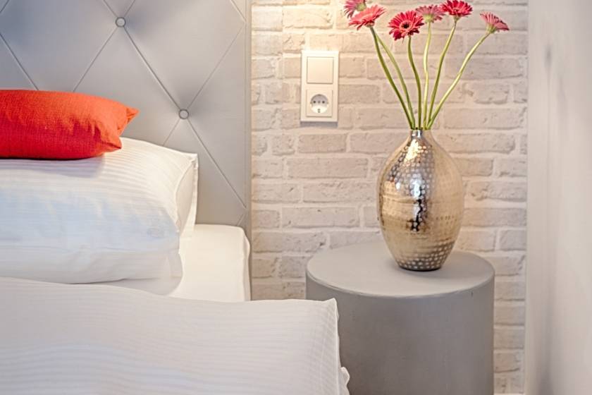 Minimalismus auf 18 m² für 1 Person. Alles Wichtige ist vorhanden, auf alles Überflüssige wurde verzichtet. In unserem Single Apartment für 1 Person finden Sie - 1 bequemes Einzelbett mit hochwertiger Federkernmatratze - eine voll ausgestattete Kitchenette mit Kühlschrank, Senseo-Kaffeemaschine, Induktionsherd und Mikrowelle sowie ausreichend Geschirr und Kochutensilien - Ess-/Arbeitstisch Kombination - ein großzügiges Badezimmer mit Fußbodenheizung, ebenerdiger Regen-Dusche, Kosmetikspiegel und Haarfön - Nicht fehlen dürfen natürlich auch ein Zimmersafe, ein 40 " Flatscreen TV sowie eine Klimaanlage