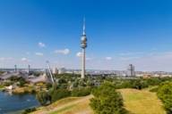 Die Livecam am Olympiaturm zeigt neben dem Olympiapark, das Stadtzentrum, den Stadtteil Schwabing und den Georg-Brauchle-Ring.